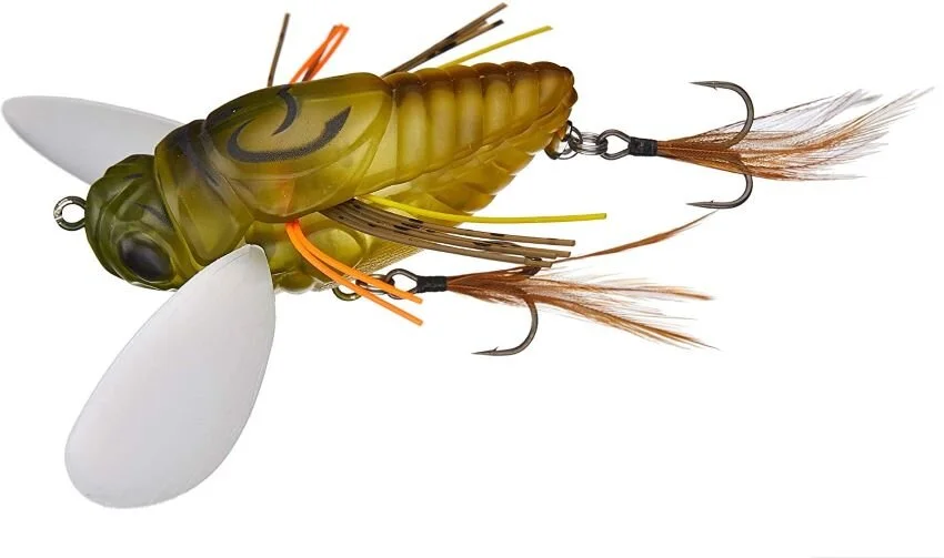 Megabass offers the Grand Siglett, which is perfect if your area experiences occasional bursts of cicadas. It rattles and has both natural finishes and clear wings for a lifelike appeal.