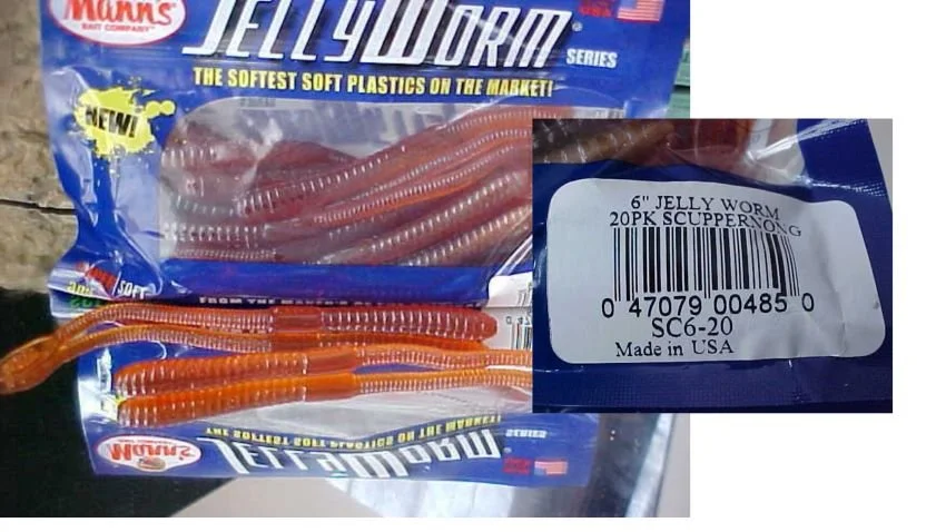If the name Scuppernong rings a bell, you’re like either a North Carolinian – it’s the state fruit – or a past reader of Bassmaster’s Harry and Charlie, where the boys flung big Scuppernong Jelly Worms with their trusty round baitcasting reels and pistol grip broomstick rods. Today Mann’s, originator of the Jelly Worm, seems to be in something of a tailspin, and it’s hard to find any of their products in this pattern except on eBay, but fortunately a handful of other manufacturers have picked up the ball and run with it.