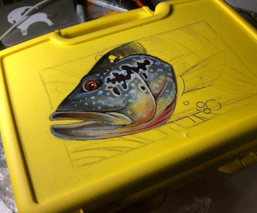 I had so much fun writing about Cliff Outdoors fly boxes adorned with roosterfish that I’ve continued to spend hours upon hours combing through Instagram looking for more. Not surprisingly, a great number of angling artists have used these perfect palettes to paint or draw their favorite species.